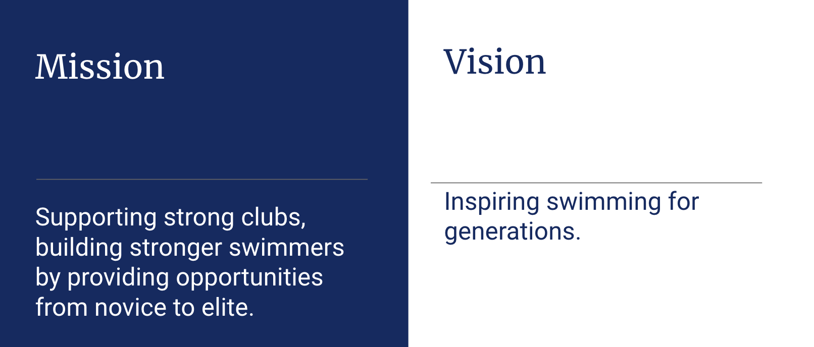 To promote and grow the sport of swimming by supporting athletes, coaches, volunteers, and clubs with education, resources, and high-quality competition, while fostering a safe, inclusive, and collaborative community.