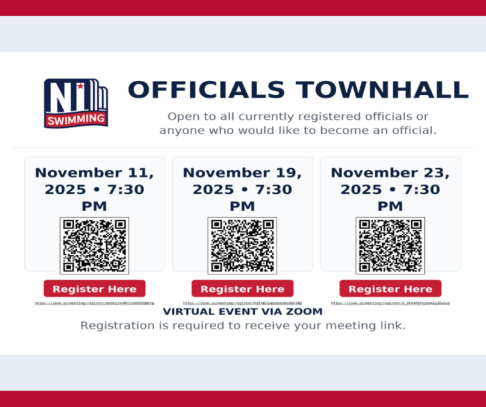 November Officials Townhall Meetings. These are for current officials or anyone who is interested in becoming an official. They will be an open forum for discussion. Register for a meeting that works for you to receive the Zoom link.