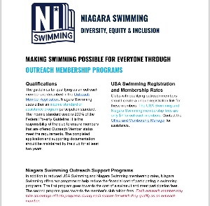 Attention Clubs and Head Coaches: We would like to remind you of the ways Niagara Swimming can help support (financially) our outreach athletes. Please reference this Outreach Program Summary, found at the link. Questions? Please reach out to the acting Diversity Chair, Mike Switalski, or Treasurer, Paul Cary.